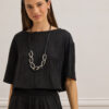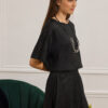 Μπλούζα cropped με κοντό μανίκι και bateau λαιμόκοψη, από ύφασμα με χαρακτηριστική paper touch και τσαλακωμένη υφή. Η άνετη γραμμή της και ο μίνιμαλ σχεδιασμός προσδίδουν σύγχρονη αισθητική. Ταιριάζει ιδανικά με τη φούστα MAMMIE για ένα ολοκληρωμένο σετ.Το ύφασμα προέρχεται από ανακυκλωμένες ίνες, συνδυάζοντας στυλ και βιωσιμότητα. Μια επιλογή με οικολογική συνείδηση, χάρη στη σύνθεση από REC PES