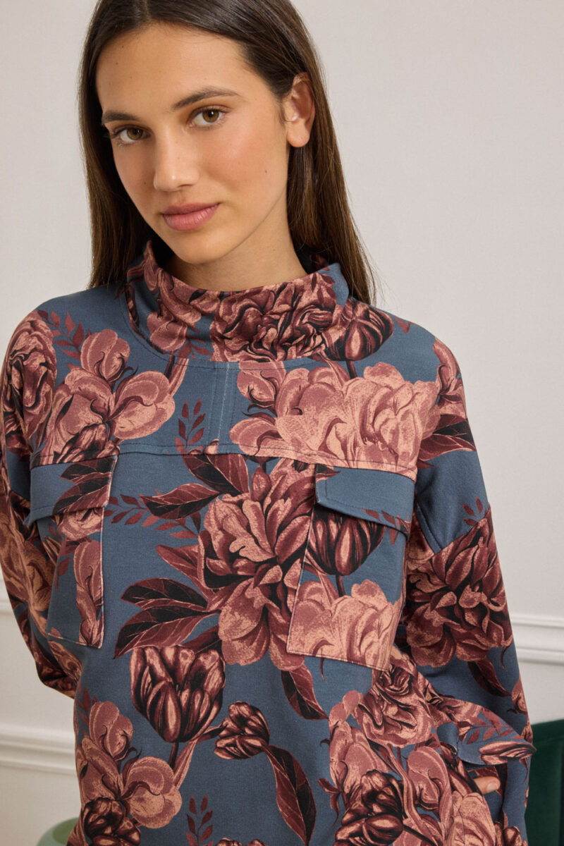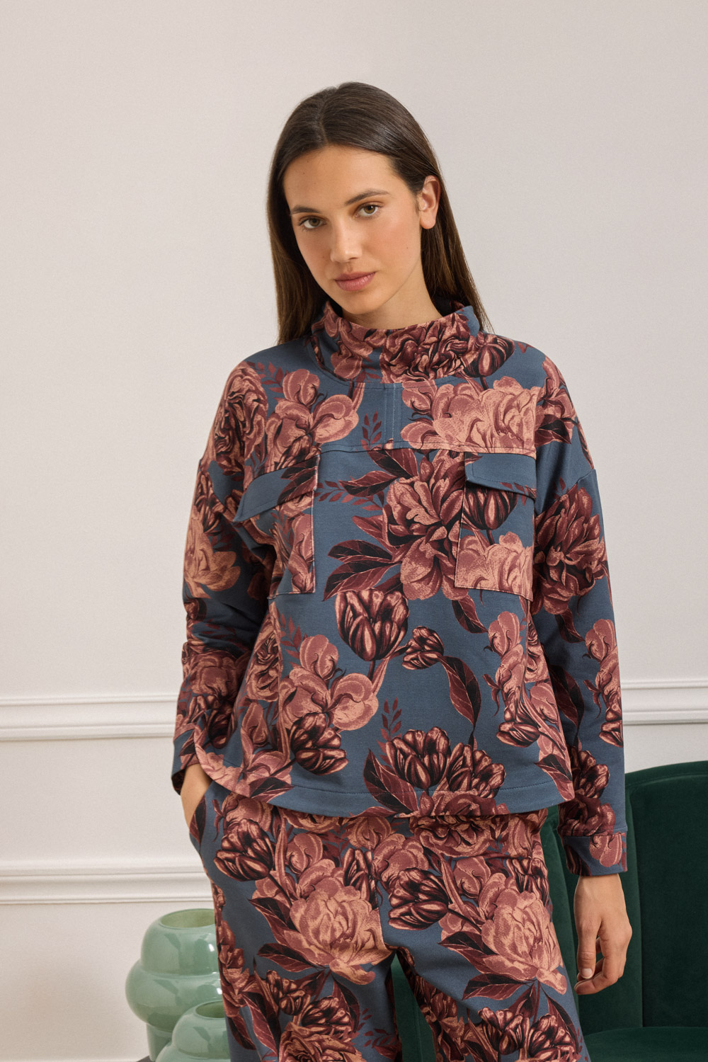 Μακρυμάνικη μπλούζα με χαλαρό ζιβάγκο, σε ιδιαίτερo print. Το άνετο, ελαφρώς φαρδύ κόψιμο αγκαλιάζει το σώμα χωρίς να το πιέζει, ενώ τα πλαϊνά ανοίγματα χαρίζουν μια μοντέρνα πινελιά. Μπροστά, ξεχωρίζουν οι τσέπες με καπάκι, που προσθέτουν λειτουργικότητα αλλά και ιδιαίτερο χαρακτήρα στο σχέδιο. Κατασκευασμένη από ύφασμα υψηλής ποιότητας με σύνθεση 95% βαμβάκι και 5% ελαστάνη, εξασφαλίζει απαλή υφή και ελαστικότητα, για άνεση όλη μέρα. Συνδυάζεται ιδανικά με το παντελόνι GUKU_1 , δημιουργώντας ένα αρμονικό και στυλάτο σύνολο outfit που καλύπτει από casual εμφανίσεις μέχρι πιο ιδιαίτερες εξόδους.