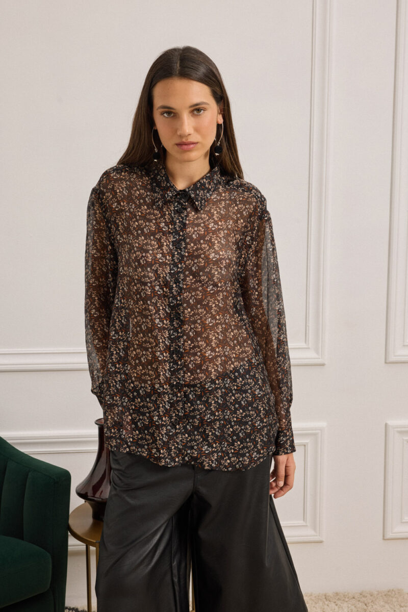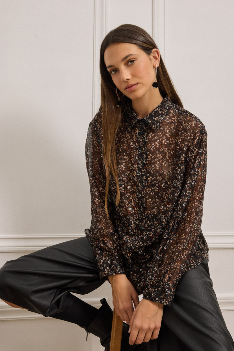 Αέρινο πουκάμισο με μακρύ μανίκι, πατιλέτα με κουμπιά και γιακά σε κλασική γραμμή. Το μανίκι καταλήγει σε μανσέτα που κουμπώνει, προσθέτοντας διακριτική δομή στο σύνολο. Το floral print δίνει θηλυκότητα και ρομαντικό χαρακτήρα, ενώ η σύνθεση από silk και viscose χαρίζει απαλή υφή. Η χαλαρή γραμμή εξασφαλίζει ελευθερία κινήσεων και κομψότητα κάθε στιγμή της ημέρας. “Αυτό το προϊόν έχει φτιαχτεί με αγάπη και σεβασμό στο περιβάλλον χρησιμοποιώντας φυσικές ίνες.”