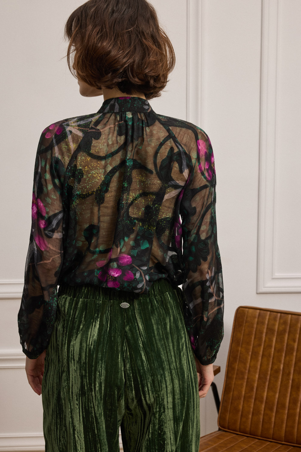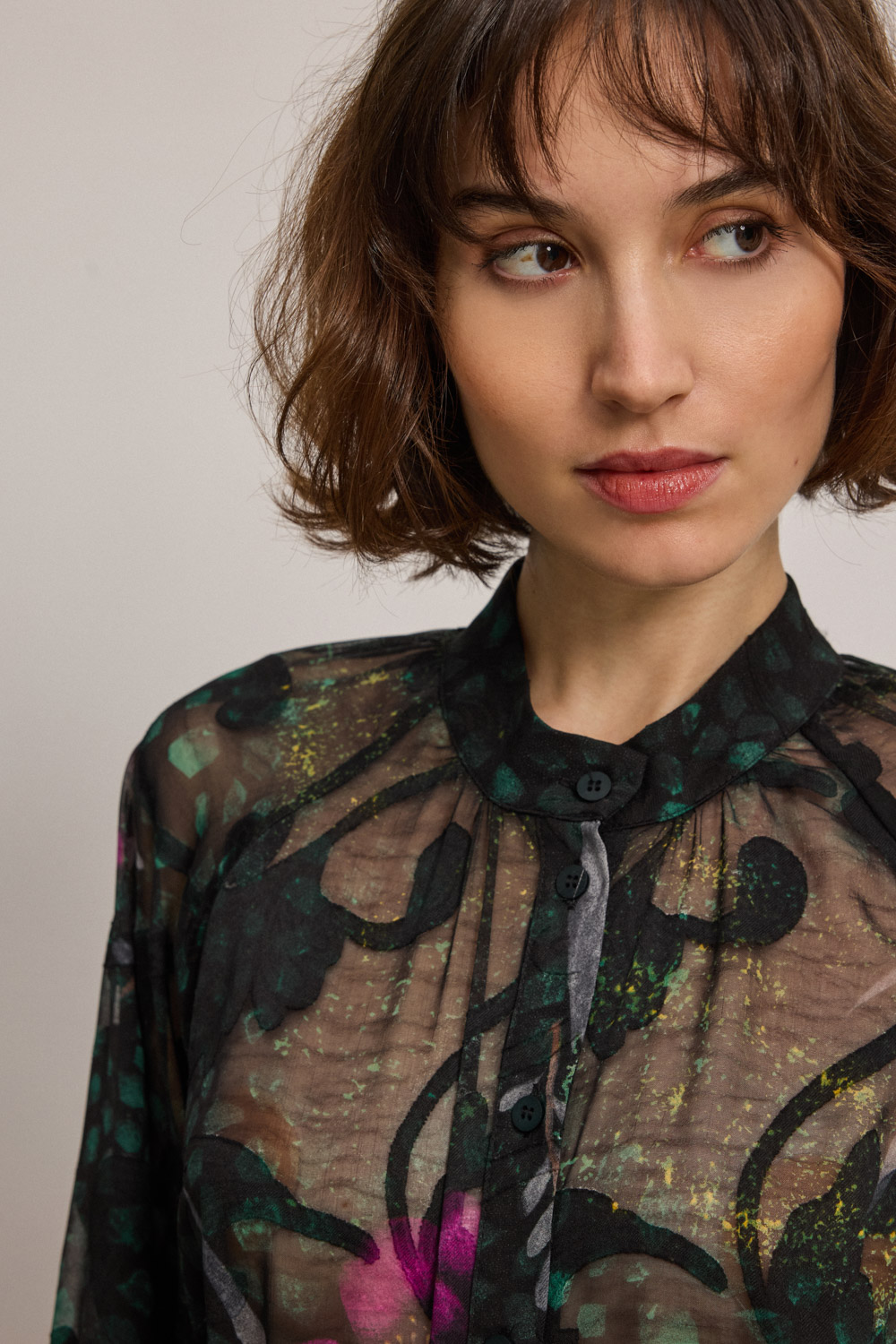 Πουκάμισο εμπριμέ με διαφάνεια και μάο γιακά