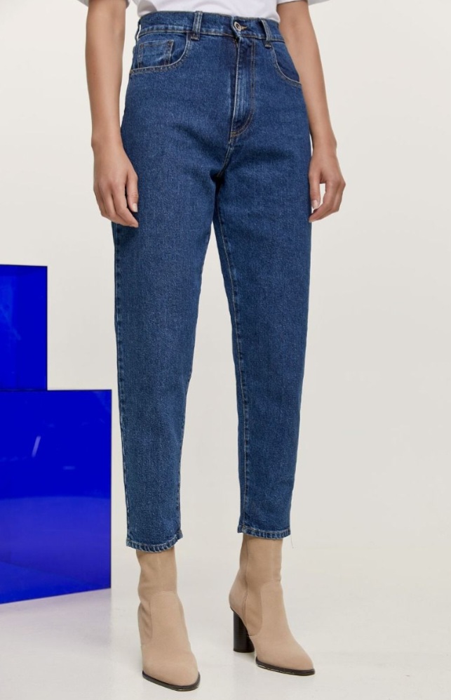 Ψηλόμεσο τζιν παντελόνι με πέντε τσέπες,κλείσιμο μπροστά με φερμουάρ και μεταλλικό κουμπί.