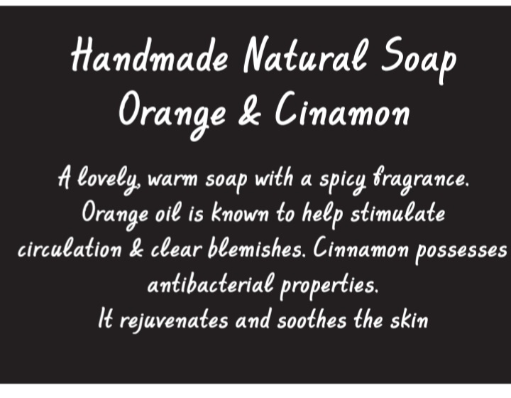Φυσικό Χειροποίητο Σαπούνι , Πορτοκάλι & Κανελλα με παπαρουνόσπορο .Το αιθέριο έλαιο πορτοκάλι τονώνει το δέρμα,βοηθά στην παραγωγή κολλαγόνου,καταπολεμά τις δυσχρωμίες,ενισχύει την άμυνα της επιδερμίδας & δίνει λάμψη & ζωντάνια.Με παπαρουνόσπορο για ελαφριά απολέπιση της επιδερμίδας.